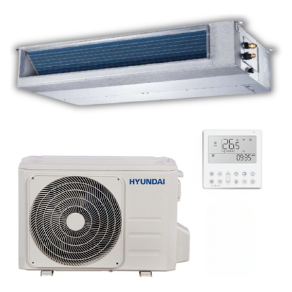 Hyundai HCD je potrubní klimatizace určená pro skrytou instalaci do falešného stropu. Díky flexibilnímu připojení sání vzduchu (zezadu nebo zdola) a zabudovanému čerpadlu kondenzátu se snadno přizpůsobí instalačním potřebám. Dosahuje energetickou třídu A++. Umožňuje vytápění až do -25 °C a chlazení až do +50 °C venkovní teploty.