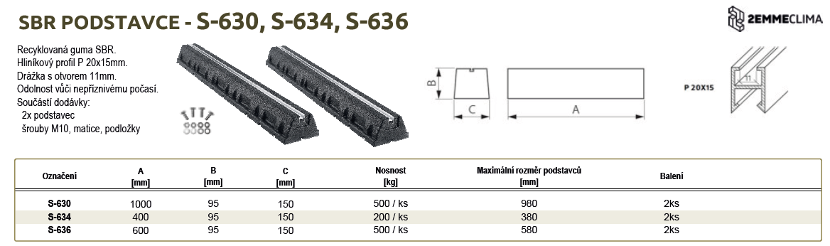 Montážní příslušenství 2EmmeClima SBR podstavce S-636 150x95x600 mm (balení 2ks)