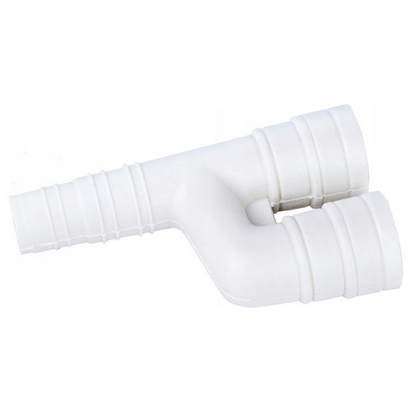Vhodné pro spojení spirálových anebo vlnitých hadic na odvod kondenzátu. Spoj ve tvaru Y. Připojení o průměru 16, 18 mm.