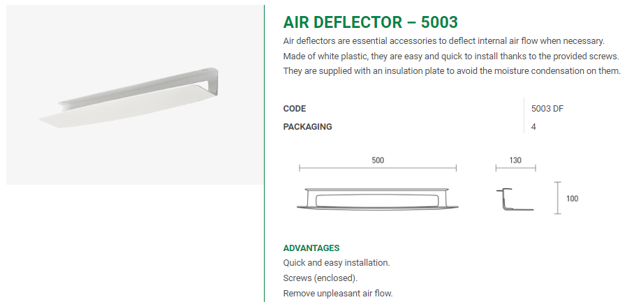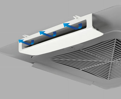 Usměrnění vyfukovaného vzduchu z klimatizace, aby nedocházelo k přímému ofuku osob. Usměrňovač vzduchu pro kazetové klimatizace se šířkou výfuku do 500mm.