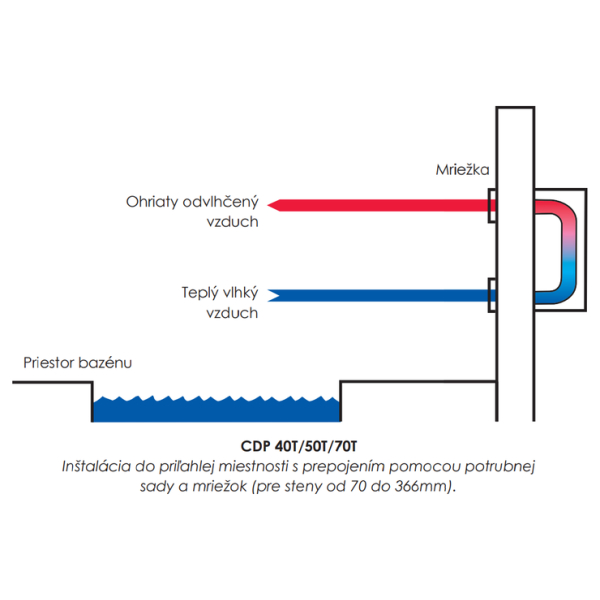 Odvlhčovač Dantherm CDP 40 T je nástěnný bazénový odvlhčovač vhodný pro domácí bazény a menší wellness centra. Tento model se montuje do místnosti přímo sousedící s bazénem s použitím potrubní propojovací soupravy. Tak aby odvlhčovač spolehlivě plnil svou funkci, instalace je vhodná pro prostory s vodní plochou bazénu o 20m2.