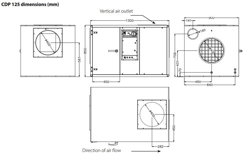 Odvlhčovač Dantherm bazénový potrubní do strojovny 230V CDP 125 MKII W 1F