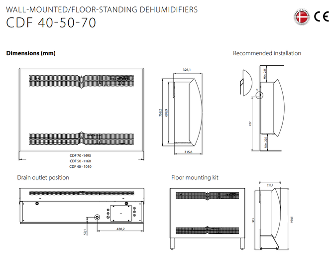 Odvlhčovač Dantherm CDF 70 je výkonný nástěnný odvlhčovač, který je efektivním řešením pro ochranu majetku před poškozením nebo zničením vlhkostí. Je vhodný pro úpravu vlhkosti ve skladech, sklepech, archivech, historických budovách nebo prostorách, kde je pravděpodobný kontakt s vodou nebo zvýšenou vlhkostí a nebezpečím tvorby plísní a koroze.