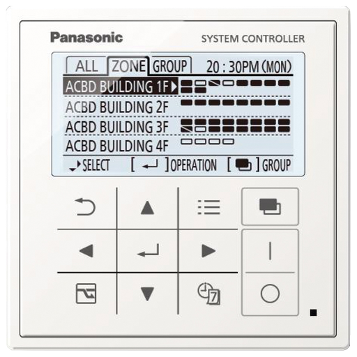 Systémový ovladač pro 64 vnitřních jednotek s týdenním časovačem.
