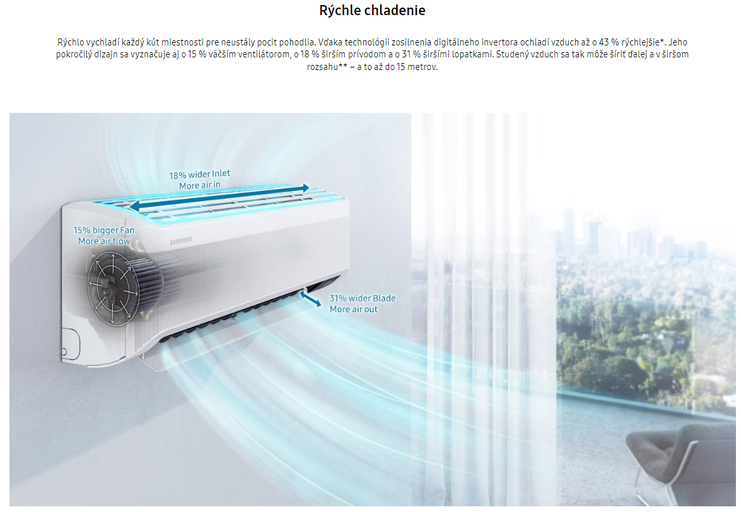 - Rychlé chlazení – chladí rychleji a do všech směrů i větších prostor