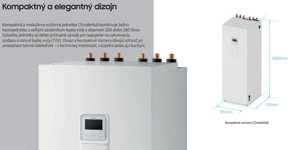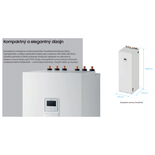 - Kompaktní velikost jednotky s velkým zásobníkem TUV (200 l)