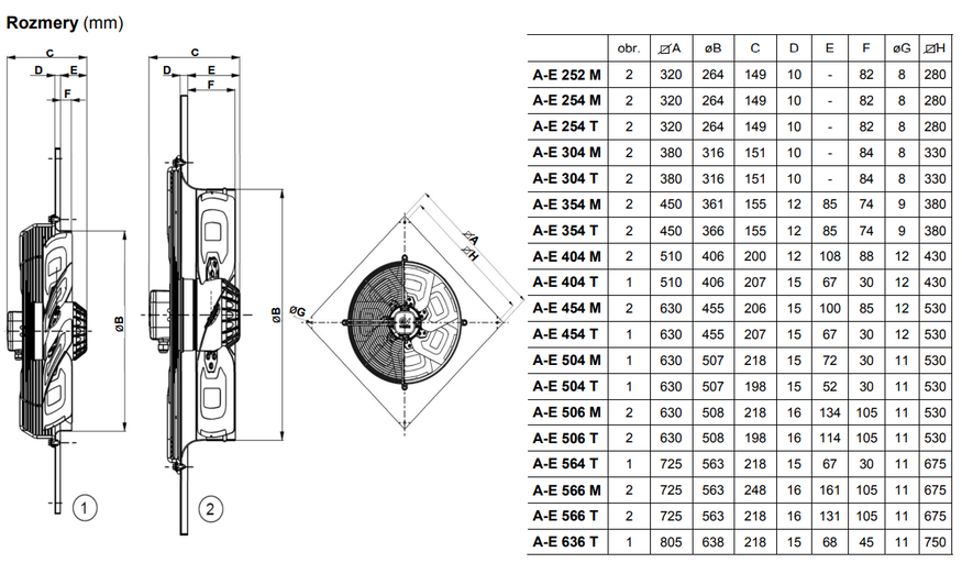 Axiální třífázový nástěnný ventilátor Vorticel AE pro průmyslové využití, s přímým výfukem, pro odsávání s montáží na stěnu s malým přesahem motoru. Vhodný pro průmyslové a komerční objekty pro odsání neprašného, neagresivního a nekorozetvorného vzduchu bez kyselin. Profil lopatek ventilátorů je navržen tak, aby dosahovaly nízké hladiny hluku.