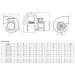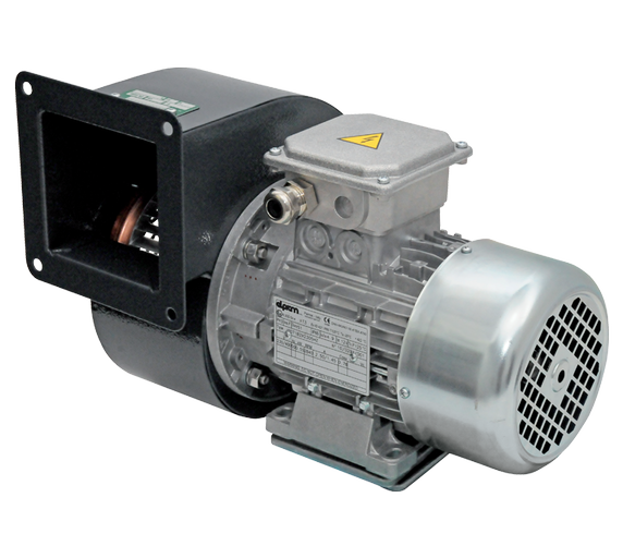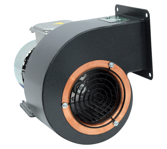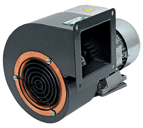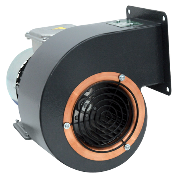 - Hliníkový radiální ventilátor s dopředu zahnutými lopatkami.