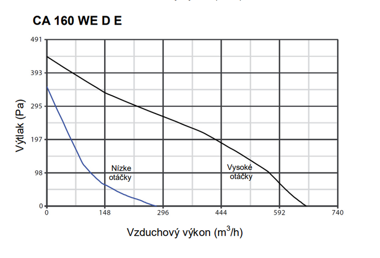 Potrubní radiální ventilátor Vortice CA 160 WE D E s průměrem připojení vzduchotechnického potrubí ø 160mm. Vhodný pro odsávání domácích i komerčních prostorů – kuchyně, kanceláře, sklady, úřady, obchody, toalety a jiné. Motor se stíněnými póly, tepelnou pojistkou a kuličkovými ložisky z nerez oceli (LL – garance 30 000 hodin bezporuchového provozu). Dosahuje vyšších vzduchových výkonů při současném dodržení nízké hlučnosti (Dostupný tlak 441 Pa / Průtok vzduchu 660 m3/h).