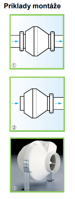 - Do potrubí s vyšší tlakovou ztrátou – dosahuje vysokých vzduchových výkonů při současném dodržení nízké hlučnosti.