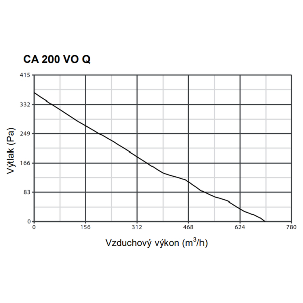 Potrubní radiální ventilátor Vortice CA 200 V0 Q s průměrem připojení vzduchotechnického potrubí ø 200mm. Jedná se o ventilátor se sníženou hlučností. Vhodný pro komerční a průmyslové prostory. Motor se stíněnými póly má kuličková ložiska z nerez oceli (LL-garance 30 000 hodin bezporuchového provozu). Je vhodný na připojení do potrubí s vyšší tlakovou ztrátou, dosahuje vysokých vzduchových výkonů při současném dodržení nízké hlučnosti (Dostupný tlak 438 Pa / Průtok vzduchu 805 m3/h). Nasávací strana má integrovanou ochranou mřížku a speciální zachytávač mastných nečistot.