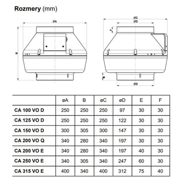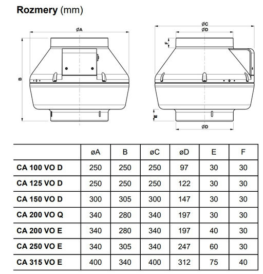 Kategorie: CA, Potrubní ventilátory, Ventilátory, CA VO