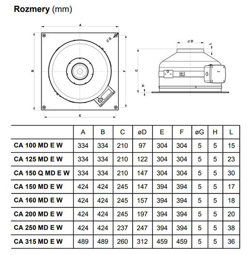 Ventilátor Vortice CA 315 MD SE W