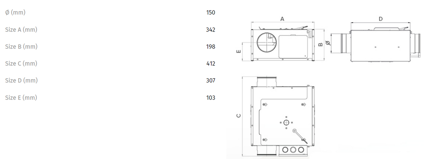Tichý skříňový radiální potrubní ventilátor s úsporným EC Vortice CA-IL 150 QUIET ES s připojením na vzduchotechnické potrubí ø 150mm. Ventilátor je určený pro napojení na kruhové potrubí a odsávání komerčních i rezidenčních objektů. Ventilátor je možné instalovat na stěnu, strop a do podhledu. Vnitřní zvukově izolační obložení. Snadný přístup pro údržbu.