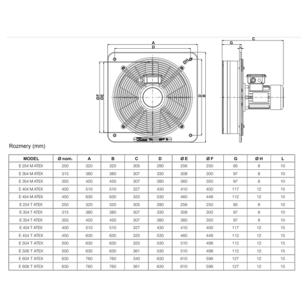 • Vyrobeno v souladu s normou EN 14986 (navrhování ventilátorů určených do potenciálně výbušných prostředí).