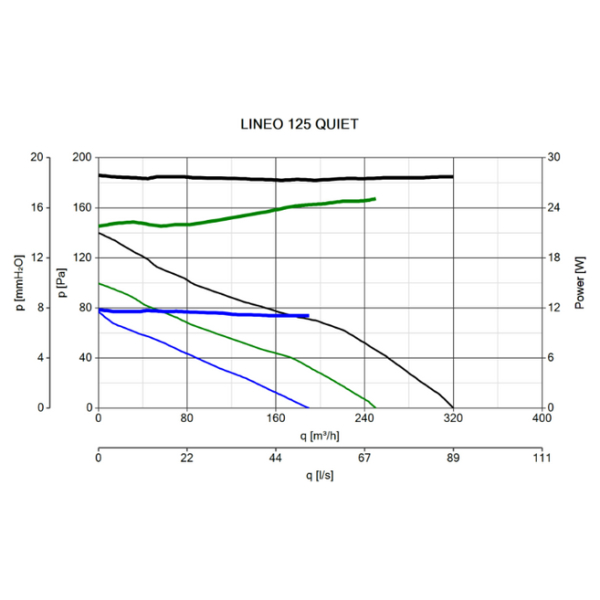 Tříotáčkový potrubní ventilátor řady Lineo Quiet je vybaven AC motorem s 3stupňovou regulací otáček a kuličkovými ložisky. Model T s možností časového doběhu. Určen pro připojení potrubí ø 125mm. Díky svým vlastnostem a konstrukci je vhodný pro delší vzduchotechnické potrubí. Krytí IP45 zajišťuje ochranu proti prachu a stříkající vodě ze všech stran. Oběžné kolo ventilátoru je vyváženo přímo na motoru.