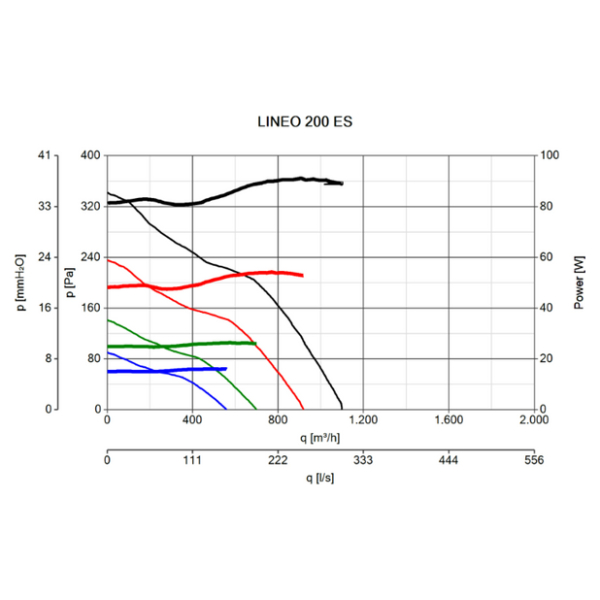 - Ventilátory řady LINEO ES se liší od řady LINEO použitím vysoce účinných elektronicky řízených 2otáčkových EC motorů s nízkou spotřebou. Jednotlivé otáčky lze nastavit při instalaci. Alternativně mohou pracovat jako 1.otáčkové, s řízením výkonu přes signál 0-10V.