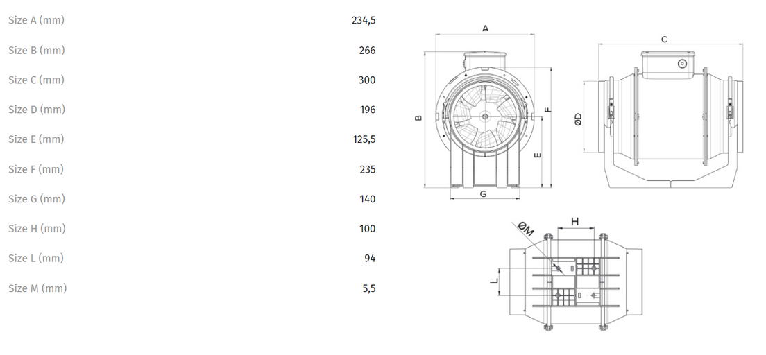 Tříotáčkový potrubní ventilátor řady Lineo je vybaven AC motorem s 3stupňovou regulací otáček a kuličkovými ložisky. Typ T s časovým doběhem. Určen pro připojení potrubí ø 200mm. Díky svým vlastnostem a konstrukci je vhodný pro delší vzduchotechnické potrubí s vysokou vlhkostí – krytí IPX5. Oběžné kolo ventilátoru je vyváženo přímo na motoru.