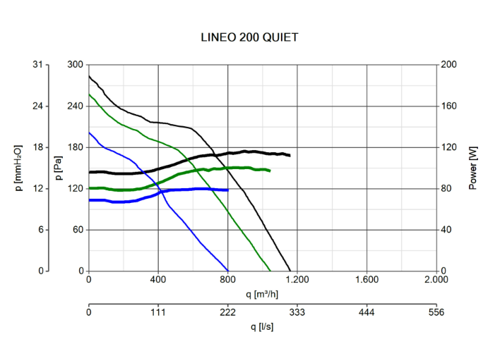 Tříotáčkový potrubní ventilátor řady Lineo Quiet je vybaven AC motorem s 3stupňovou regulací otáček a kuličkovými ložisky. Model T s možností časového doběhu. Určen pro připojení potrubí ø 200mm. Díky svým vlastnostem a konstrukci je vhodný pro delší vzduchotechnické potrubí. Krytí IPX5 zajišťuje ochranu proti prachu a stříkající vodě ze všech stran. Oběžné kolo ventilátoru je vyváženo přímo na motoru.