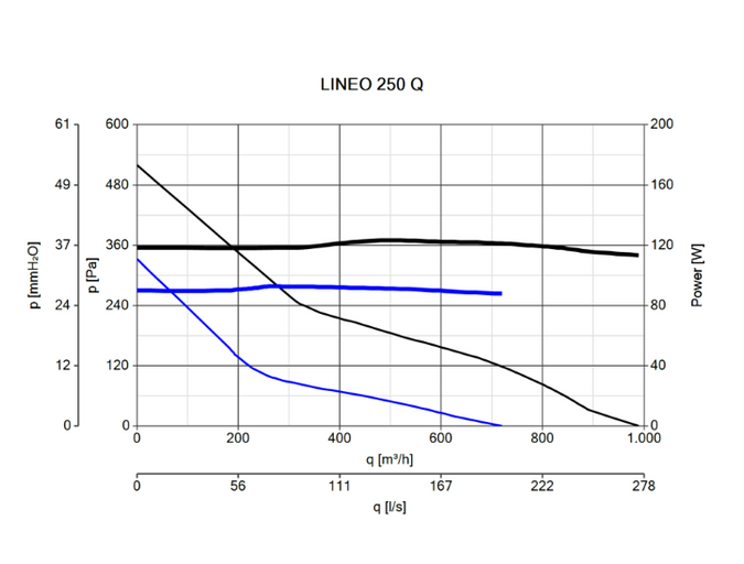 - Typ Q je označení pro odlehčenou a kompaktní verzi ventilátoru LINEO 250.