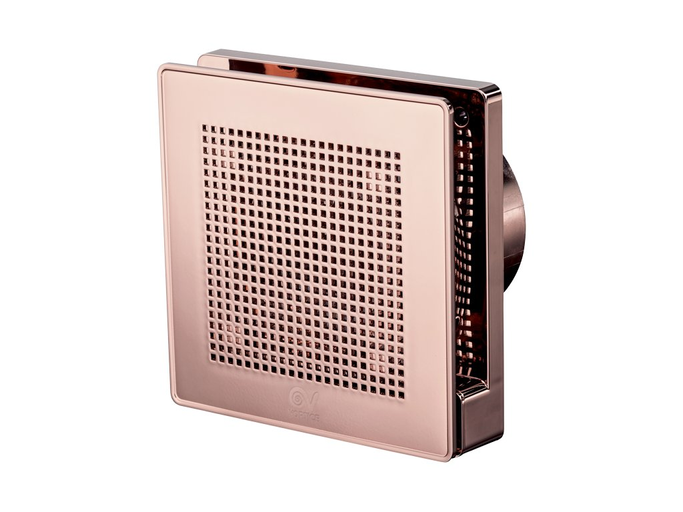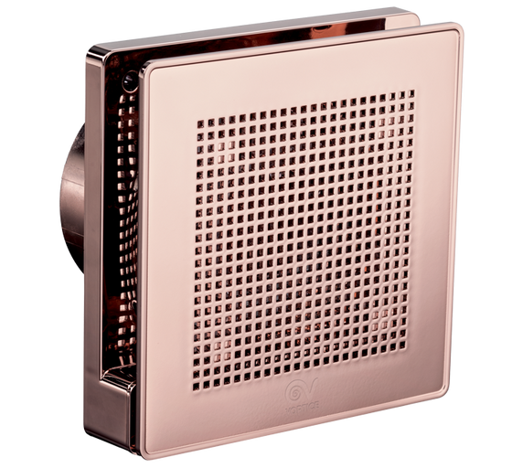 Velmi tichý designový axiální ventilátor do koupelny s vysokým vzduchovým výkonem a vysokým krytím. Speciální dvojitý nátěr pomocí nanotechnologie v měděné barvě (barva růžové zlato PINK GOLD). Vhodné pro menší a středně velké místnosti s přímým výfukem nebo výfukem do krátkého potrubí (ø100mm). Montáž na stěnu nebo do stropu v jakékoliv pozici.
