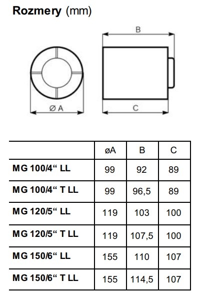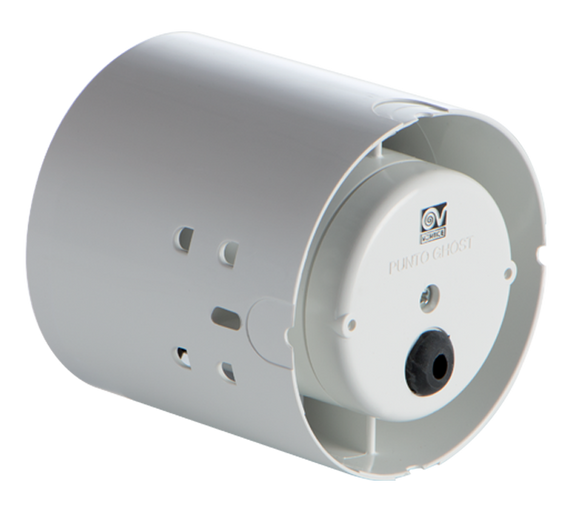 Axiální odsávací ventilátor Vortice Punto Ghost (MG) s připojením na potrubí, s časovým spínačem a kuličkovými ložisky. Vhodný pro nepřetržité nebo přerušované větrání koupelen, toalet, kuchyní nebo veřejných prostor. Navrženo pro odsávání přes stěnu nebo montáž do krátkého potrubí. Připojení na potrubí Ø 100 mm. Tyto ventilátory mohou být použity k vyrovnání teplot mezi přilehlými místnostmi.