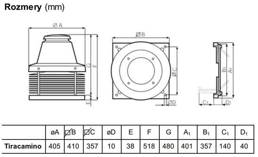 Komínový odsávací ventilátor Vortice Tiracamino s montáží na komín pro zesílení tahu komína při otevřeném ohni. Model s asynchronním indukčním motorem, kuličkovými ložisky je navržen tak, aby dlouhodobě snášel vysoké teploty (200°C). Pokud v krbu, v peci není oheň, může být použit jako klasický odsávací ventilátor.