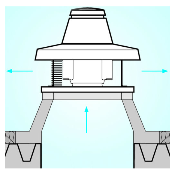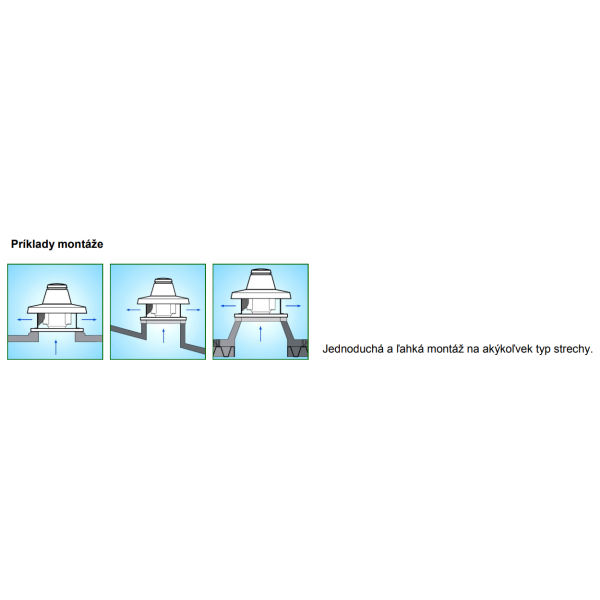 Nástřešní ventilátor Vortice Torrette s horizontálním výfukem. Jednoduchá a snadná montáž na jakýkoli typ střechy obytných, komerčních a průmyslových budov. Ventilátor není vhodný pro odsávání vzduchu přímo z krbu nebo kotlů.