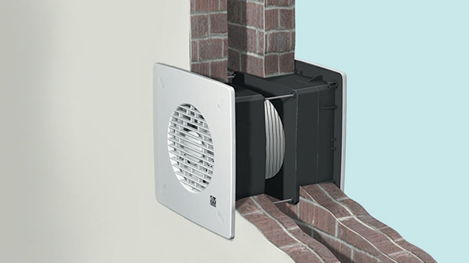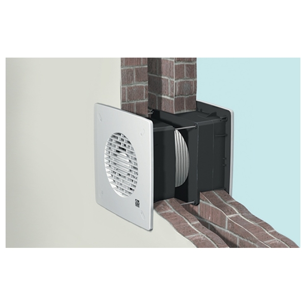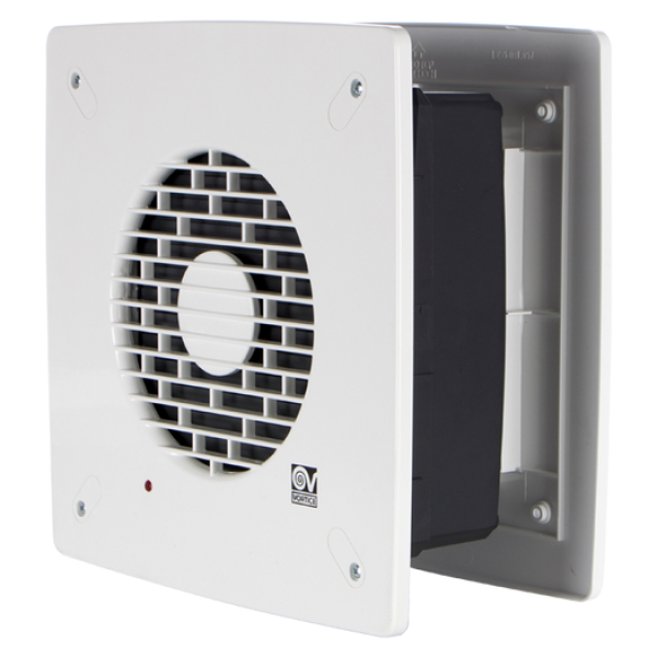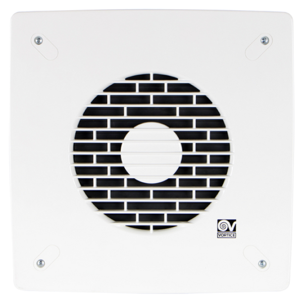 Axiální přívodní / odsávací ventilátor Vortice Vario pro zabudování do zdi. S automatickou mřížkou, reverzním chodem a zvýšeným vzduchovým výkonem. S připojením na potrubí Ø 150mm. Vhodný pro byty, obchody, kavárny, sportovní střediska, tělocvičny, restaurace, veřejné budovy, úřady, školy, obecní sály a jiné.