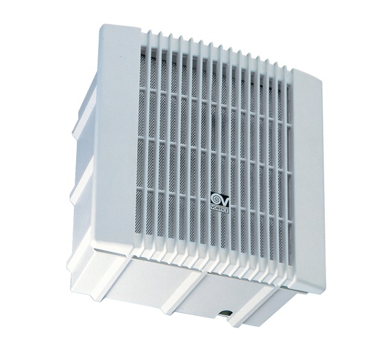 Radiální dvourychlostní odsávací ventilátor Vortice vhodný pro odsávání středních a velkých místností v bytech, kancelářích, včetně místností s vysokou relativní vlhkostí. Na zabudování do zdi, s výfukem do potrubí Ø 100mm. Montáž na zeď nebo strop.