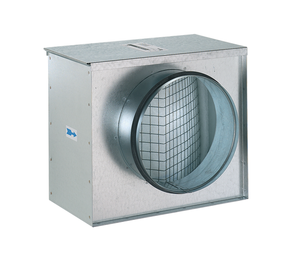 Filtrační box, který se instaluje do ventilačního systému, vždy za ventilátor a/nebo tlumič hluku/ohřívač potrubí. Vhodné k zabránění vnikání nečistot do ventilačního systému. Filtr ze syntetických vláken (třída filtrace G3/89%). Pozinkovaná ocelová skříňka s krytem upevněným pomocí dvou adaptérů pro zjednodušení údržby. Maximální pracovní teplota: +60°C.