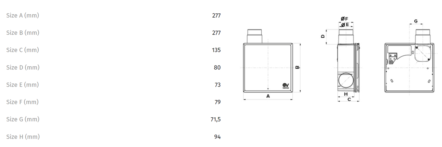 Připojovací otvor pro připojení vyústky (QE-AD kód 21118, k dispozici jako příslušenství), která může odvádět vzduch z druhé místnosti.