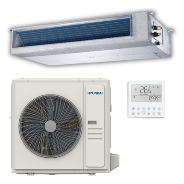 Hyundai HCD je potrubná klimatizácia určená pre skrytú inštaláciu do falošného stropu. Vďaka flexibilnému pripojeniu nasávania vzduchu (zozadu alebo zdola) a zabudovanému čerpadlu kondenzátu sa ľahko prispôsobí inštalačným potrebám. Dosahuje energetickú triedu A++. Umožňuje vykurovanie až do -25 °C a chladenie až do +50 °C vonkajšej teploty.