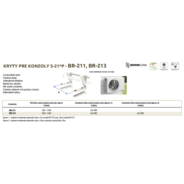 Montážne príslušenstvo 2EmmeClima kryty BR-213 pre konzolu S-213