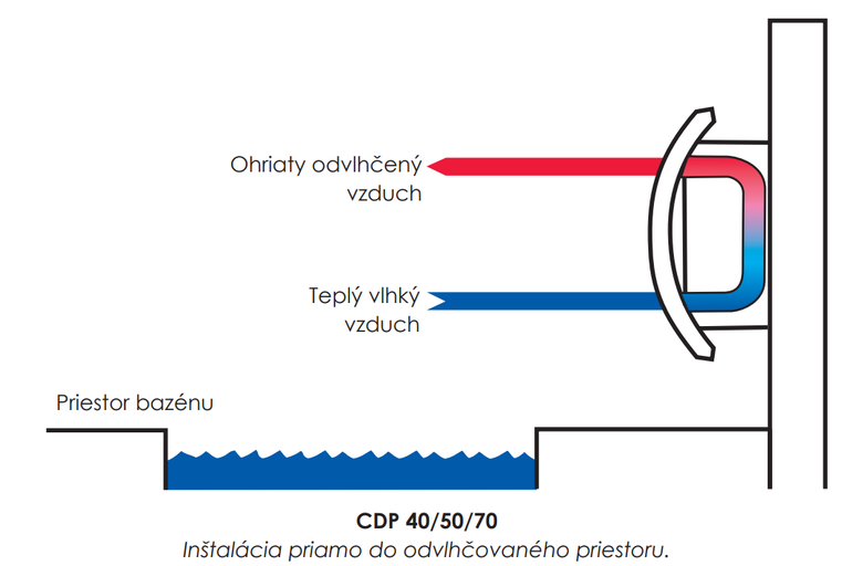 Odvlhčovač Dantherm CDP 50 je nástenný bazénový odvlhčovač vhodný pre domáce bazény a menšie wellness centrá. Tento model je určený na inštaláciu priamo do odvlhčovaného priestoru. Tak aby odvlhčovač spoľahlivo plnil svoju funkciu, inštalácia je vhodná pre priestory s vodnou plochou bazéna o 30m2.