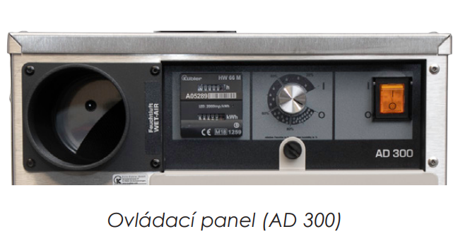- Vzduchový výkon 210 m³/h (suchý vzduch), 110 m³/h (regener. vzduch)