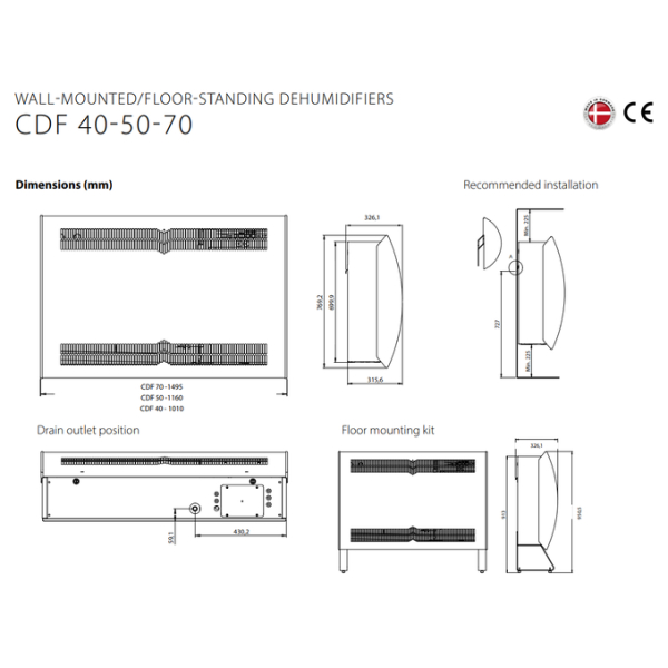 Odvlhčovač Dantherm CDF 40 je výkonný nástenný odvlhčovač, ktorý je efektívnym riešením na ochranu majetku pred poškodením alebo zničením vlhkosťou. Je vhodný na úpravu vlhkosti v skladoch, pivniciach, archívoch, historických budovách alebo priestoroch, kde je pravdepodobný kontakt s vodou alebo zvýšenou vlhkosťou a nebezpečenstvom tvorby plesní a korózie.