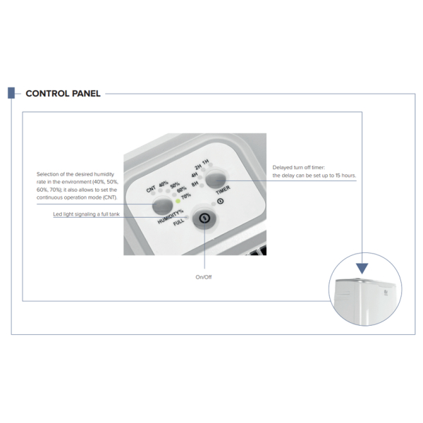 - Nastavenie požadovanej vlhkosti 40-70% RH alebo nepretržité odvlhčovanie
