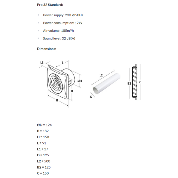 Pre CDP 40-70. 185 m3/h (Ø125mm).