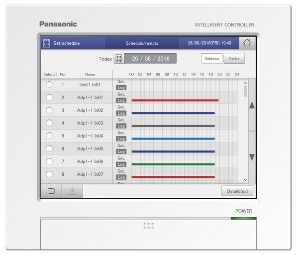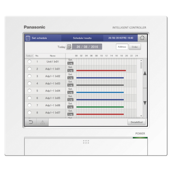 Inteligentný ovládač (dotykový displej/webový server) pre ovládanie až 256 vnútorných jednotiek vrátane pomeru rozdelenia výkonu (LDR).
