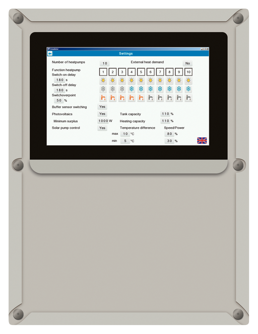 Kaskádový ovládač pre až 10 tepelných čerpadiel generácie H a novšie.