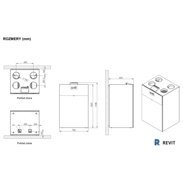 - Pripojenie potrubia – 4x Ø160mm zhora