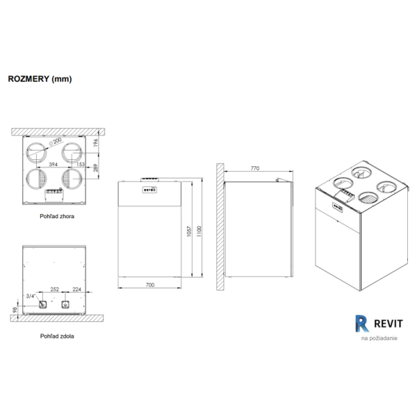 - Pripojenie potrubia – 4x Ø200mm zhora