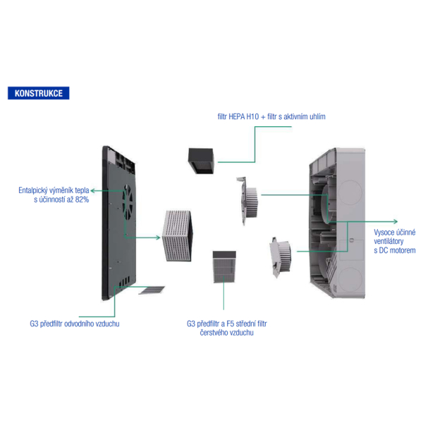 - Vysoko účinný filter HEPA H10 + filter s aktívnym uhlím (SA)