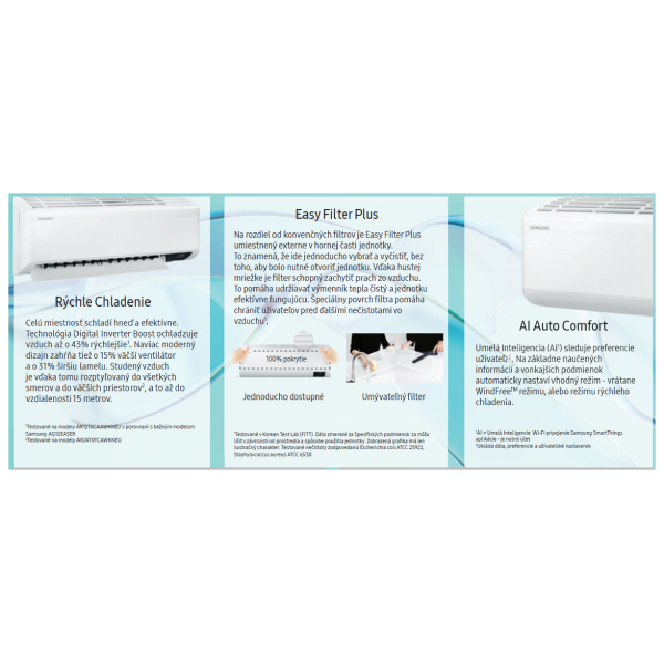 - AI Auto Comfort – automatická optimalizácia režimu na základe analýzy okolitého prostredia