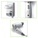 Nástenný sušič vlasov Vortice Vortphon je vhodný pre použitie v hotelových kúpeľniach, penziónoch, lodných kajutách, súkromných domoch apod. Možnosť nastavenie dvoch vzduchových úrovní výkonu a 3 teplotných úrovní: 25°C (okolitá) / 60°C / 80°C. Dĺžka napájacieho káblu je 120-160 cm. Vybavené vlnovým elektrickým odporom, ktorý sa na rozdiel od tradičného špirálového odporu vyznačuje dlhšou životnosťou a hlavne lepšou kontrolou teploty. Spĺňajú vysoké bezpečnostné štandardy vďaka integrovaným bezpečnostným prvkom. Jednoduchá inštalácia a použitie.