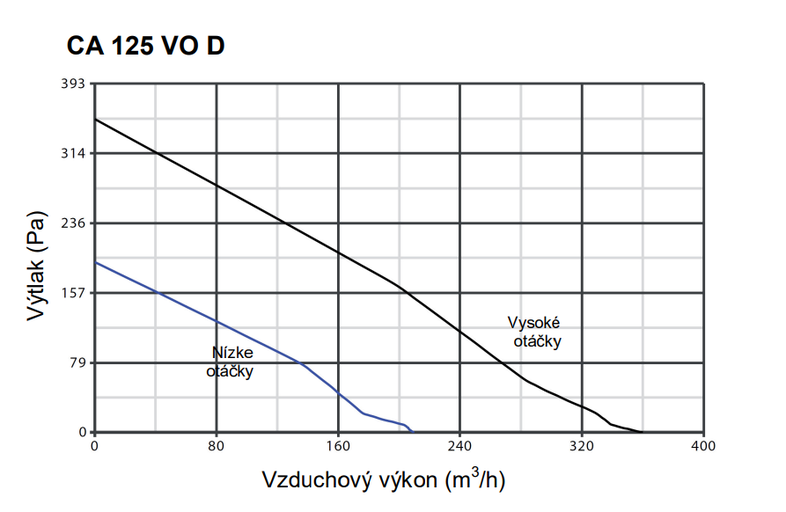 Radiálny potrubný ventilátor Vortice CA 125 V0 D s priemerom pripojenia vzduchotechnického potrubia ø 125mm. Motor s tienenými pólmi má guľôčkové ložiská z nerez ocele. Ventilátor je určený na napojenie na kruhové potrubie a odsávanie komerčných i rezidenčných objektov a je vhodný na pripojenie do potrubia s vyššou tlakovou stratou, dosahuje vysokých vzduchových výkonov pri súčasnom dodržaní nízkej hlučnosti. (Dostupný tlak 340 Pa/Prietok vzduchu 300 m3/h).
