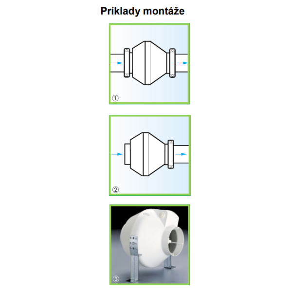 - Do potrubia s vyššou tlakovou stratou – dosahuje vysoké vzduchové výkony pri súčasnom dodržaní nízkej hlučnosti.