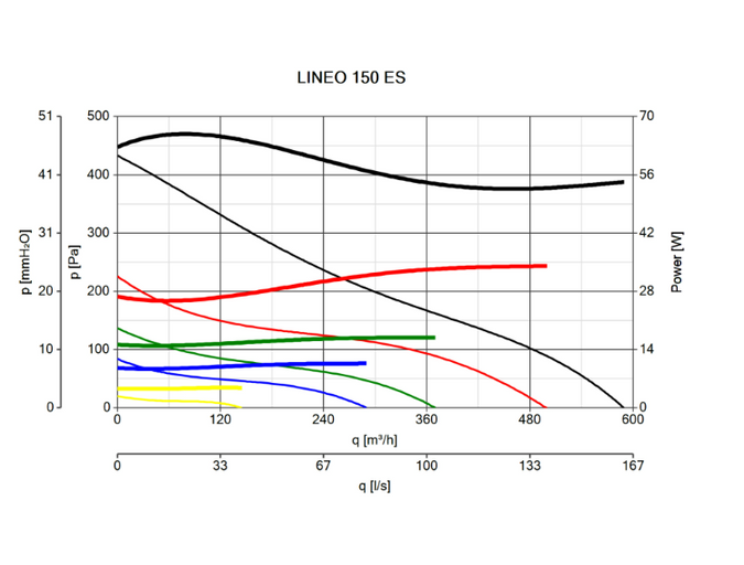 - Ventilátory radu LINEO ES sa líšia od radu LINEO použitím vysoko účinných elektronicky riadených 2-otáčkových EC motorov s nízkou spotrebou. Jednotlivé otáčky je možné nastaviť pri inštalácii. Alternatívne môžu pracovať ako 1-otáčkové, s riadením výkonu cez signál 0-10V.