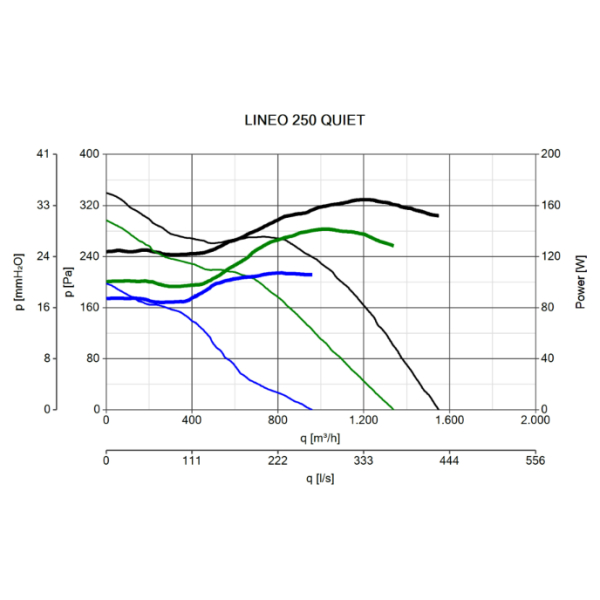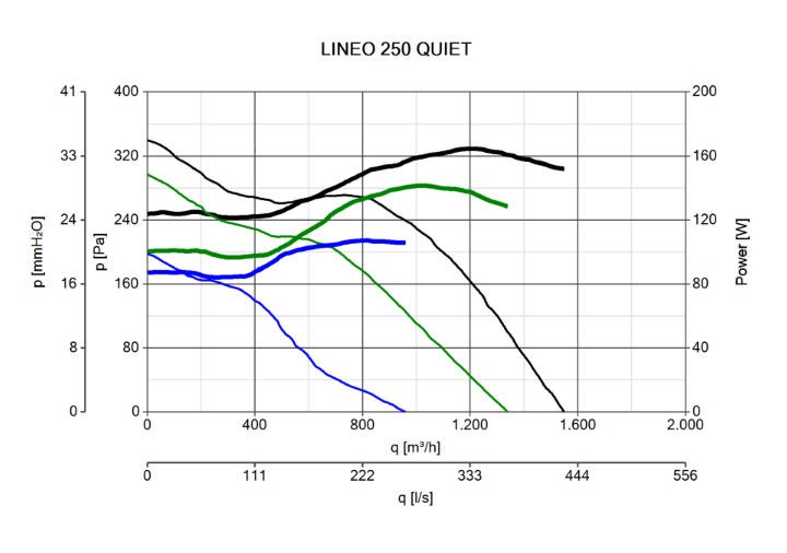 Trojotáčkový potrubný ventilátor radu Lineo QUIET je vybavený AC motorom s 3-stupňovou reguláciou otáčok a guľôčkovými ložiskami. Určený na pripojenie potrubia ø 250mm. Vďaka svojim vlastnostiam a konštrukcii je vhodný pre dlhšie vzduchotechnické potrubie. Krytie IPX5 zaisťuje ochranu proti prachu a striekajúcej vode zo všetkých strán. Obežné koleso ventilátora je vyvážené priamo na motore.
